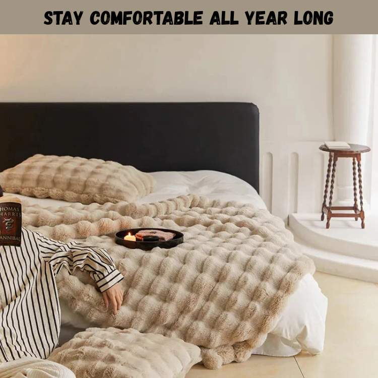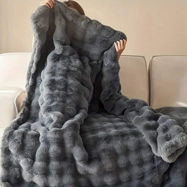 Fabriquée avec de la fausse fourrure de lapin durable et des coutures sécurisées, la couverture conserve sa douceur et sa forme au fil du temps sans perdre ni sa sensation luxueuse.